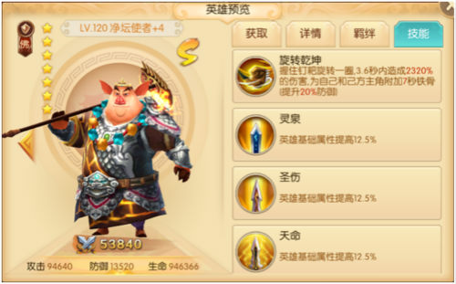 别看在其他作品里,咱胖胖的二师兄一遇到妖怪要么就大喊着要分行李散伙,要么就是“大师兄,二师兄被妖怪抓走了”,到了西游记之《大圣归来》同名手游里,他就是实力强劲的英雄之一。玩家的成圣路上,如果有幸能收下他作为自己的队友,可以说是队伍有力的输出保障,如果有BOSS怪碰到净坛使者,那就只能“吃俺老猪一杷”了!
