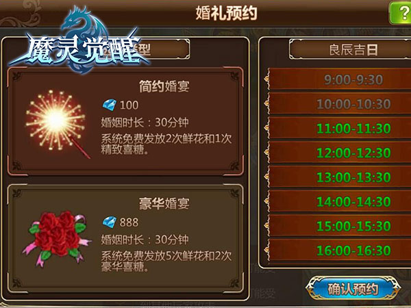 想要结为夫妻的双方,只要您的英雄等级大于40级,就可以前往碧空城牧师出申请结婚。英雄们在申请结婚后,就会发现婚宴专属提示按钮了,点击按钮则可以预约婚宴!《魔灵觉醒》中,每天婚礼开放时间为9:00-23:00,婚礼接受预约时间则为8:00-22:00,各位英雄可要注意时间,错过就需要再多等一日。