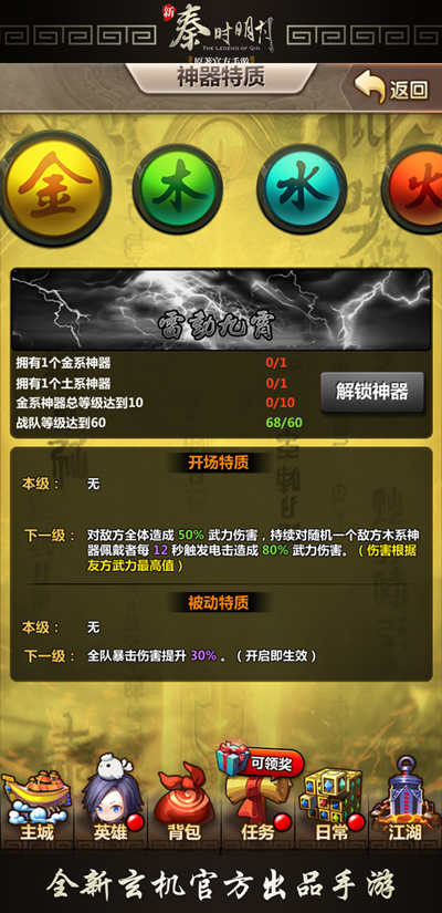 与此同时《新秦时明月》还增加了新的神器功能。每个属性的神器都会拥有一个终极技能,终极技能拥有开场释放的特质和被动提升全队属性的特质。