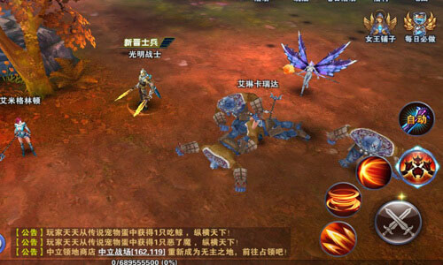 热血大场面随时上演,超燃对战谁都不是炮灰,每日还有世界BOSS等你组团一起刷,世界就是战场,战场就是够激情,大剑狂斧旋转挥舞、魔法奥术如烟似霞、箭雨飞芒漫天蹁跹,整个战场激烈程度碾压汽车人城市追逐,超越赛博坦星上的远程对射,堪比最终决战时擎天柱持剑上阵,媲美电影级的技能特效,让你在电脑屏幕前也能体验到激动人心的战斗场面,这个野外你还不来玩?