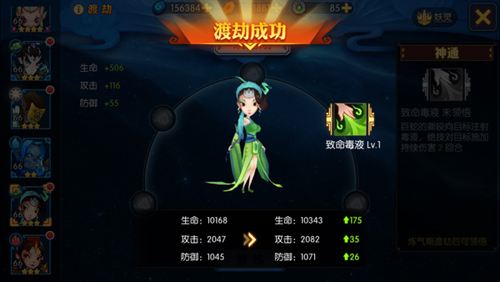 渡劫成功加成属性:伙伴生命、攻击、防御战斗属性大幅加成和提升神通技能属性。